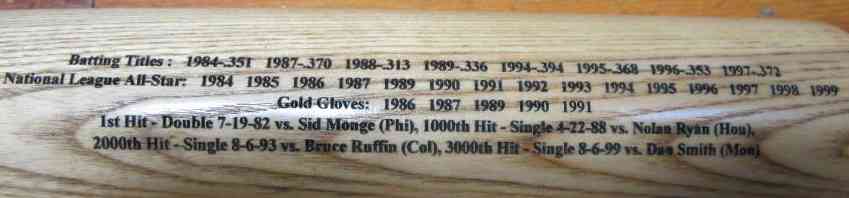 arrangement with Gwynn Sports (run by Tony's wife Alicia) on these bats and other Tony Gwynn