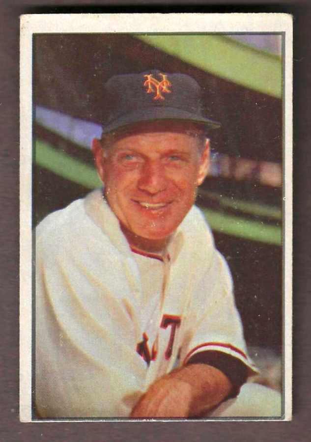1953 Bowman Color # 55 Leo Durocher MGR [#] (New York Giants) [VG] He was Willie Mays manager as a rookie and very helpful in Mays' career. |