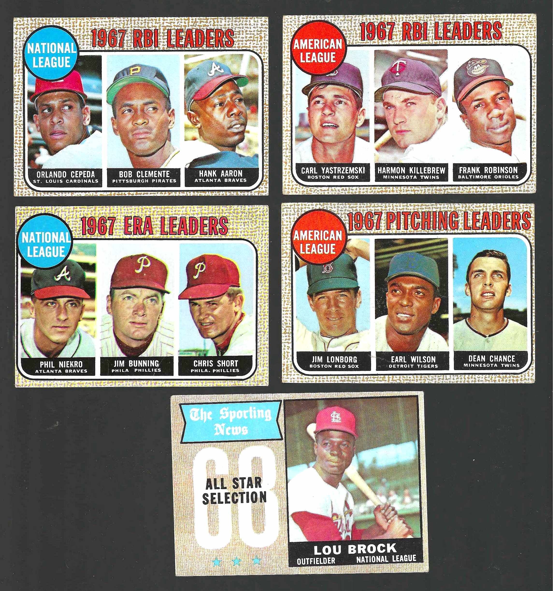 out | 1968 Topps # 5 N.L. HR Leaders (Hank Aaron/Willie McCovey/Ron Santo) Also Jim Wynn (Braves/Giants/Cubs/Astros) |