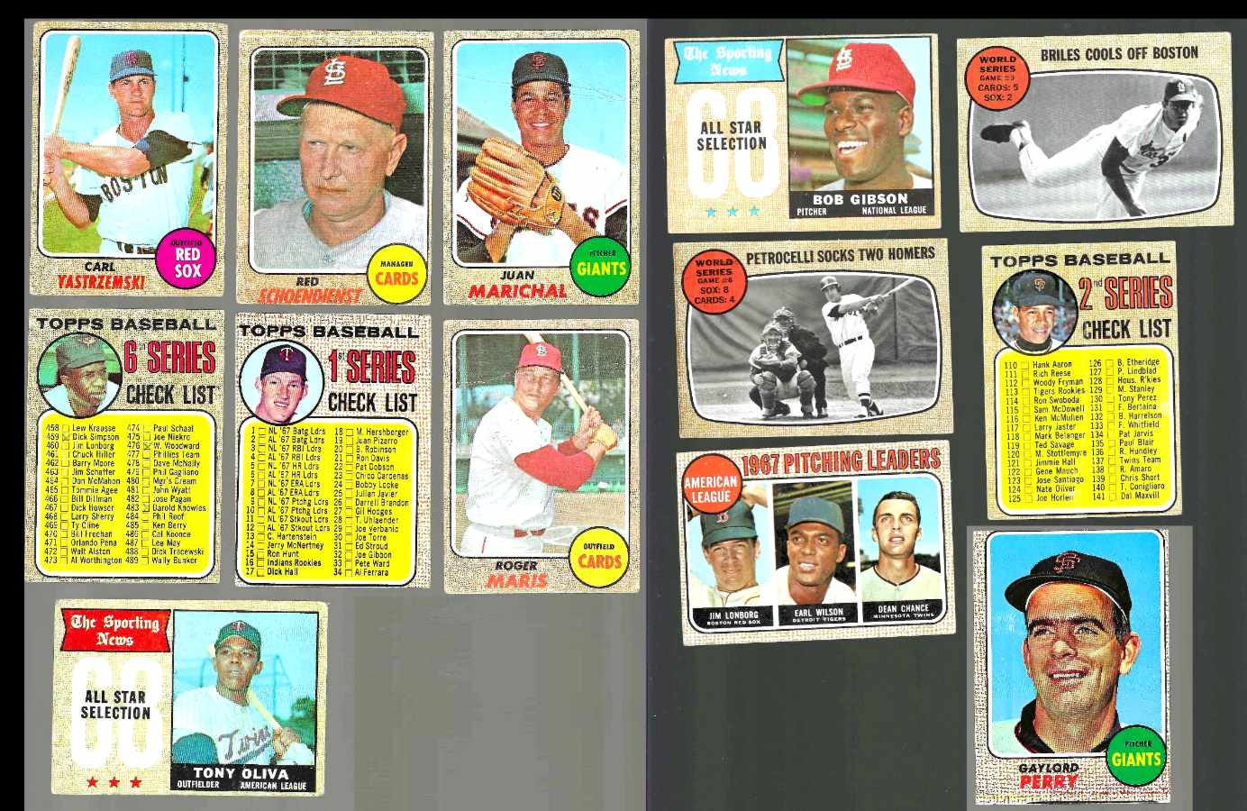 out | 1968 Topps - CARDINALS Team Lot (12) different w/Roger Maris,Bob Gibson AS Also Red Schoendienst, Team card, Bobby Tolan... Maris POOR, Gibson AS VG/EX (not pictured). |