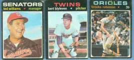 out | 1971 Topps - Orioles - Near Complete Team Set (24/29) Includes World Champions Team card w/St Louis Browns team records on back. Missing:#122,300,570,640,700. |