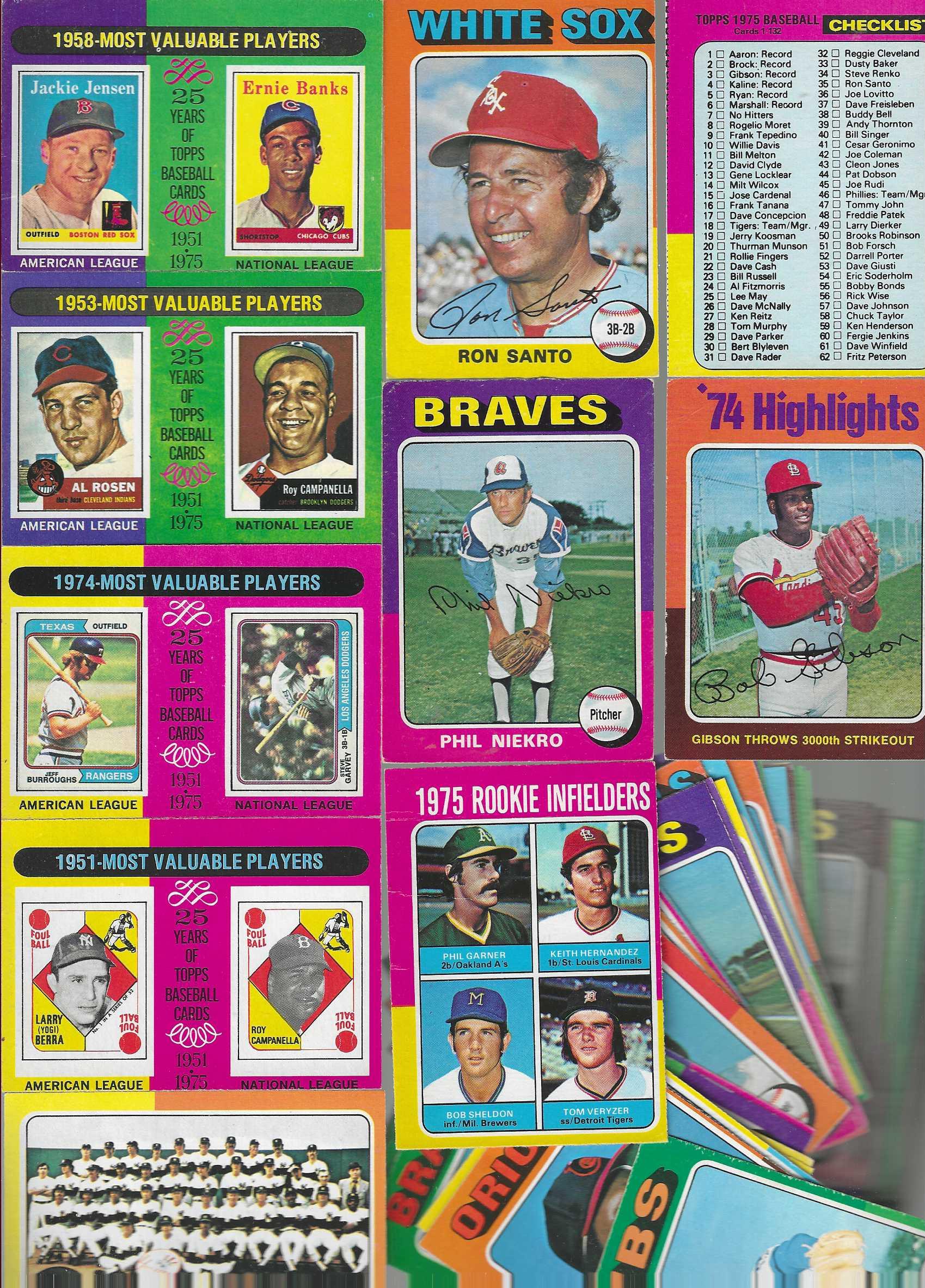 | out | 1975 O-Pee-Chee/OPC - STARTER SET/Lot of (261) different with HALL-of-F Start or upgrade your set with this higher grade lot. (6)MVP cards w/Mantle & Mays,(9) HOFers,(16) Team/Leaders/Playoffs/World Series |