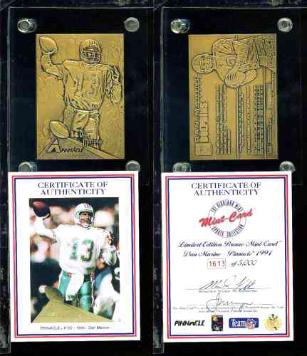 Dan Marino - HIGHLAND MINT SOLID BRONZE Card (1994) in thick acrylic LIMITED EDITION-w/ONLY 5000 MADE !!! Individually serially numbered SOLID BRONZE card. In original case w/#'d COA. |