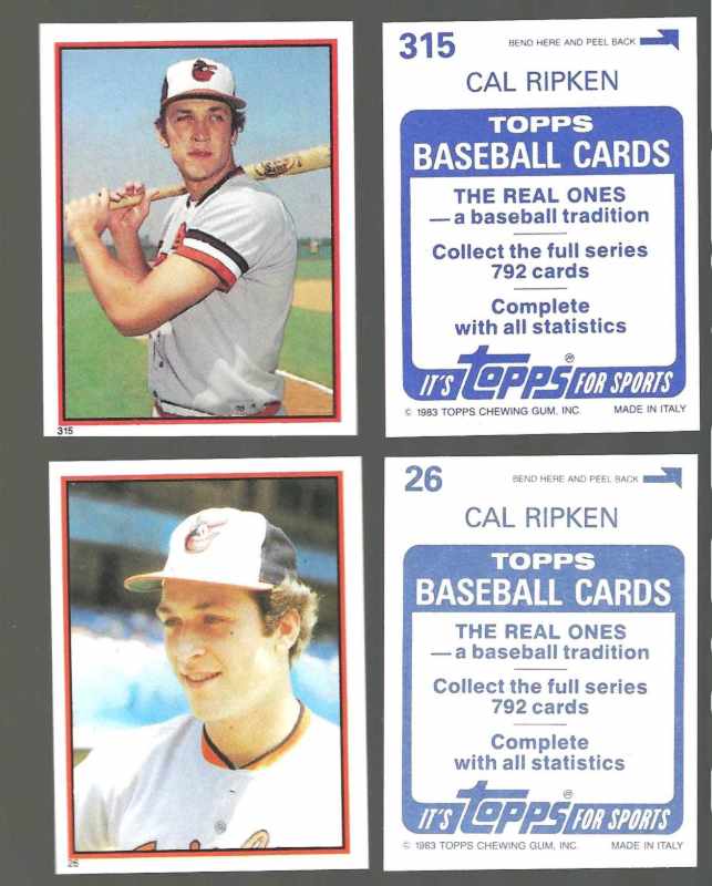 1983 Topps Stickers #315 CAL RIPKEN (Orioles) [NM/MINT] 2nd year !!! |