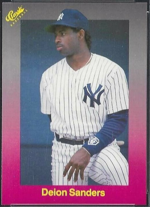 Deion Sanders - 1990 Classic Blue #21 *** BOTH VARIATIONS *** (Yankees) [NEAR MINT to NM/MINT] Both the very, very scarce 'PRIME TIME' (only 1 out of 25 on eBay $16) and regular 'Deion PRIME TIME Sanders' variation !!! |